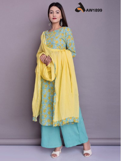 AW1903 Premium quality finest cotton beautiful 3 pc kurta pant and dupatta set in nice pastels colors.