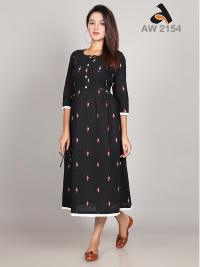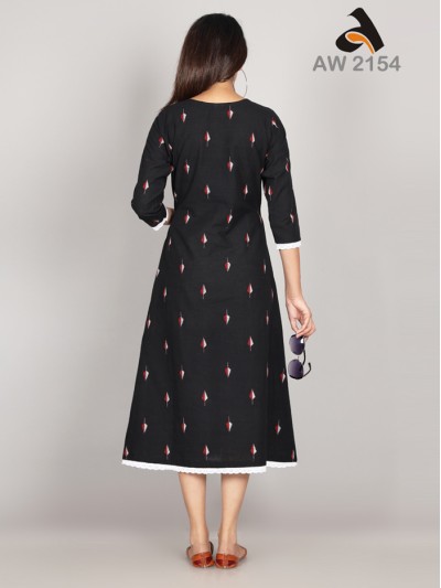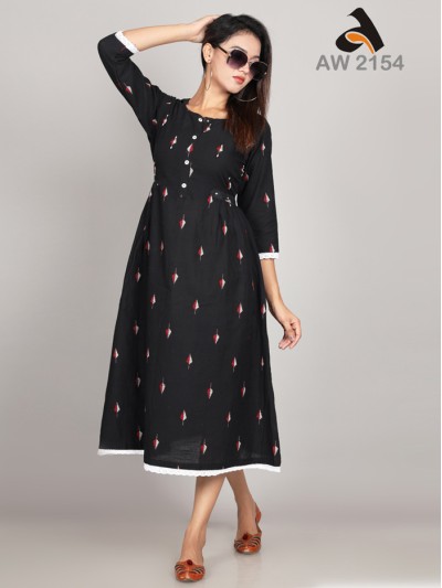 Premium quality muslin cotton long huge flairy dress in multi tier pattern.