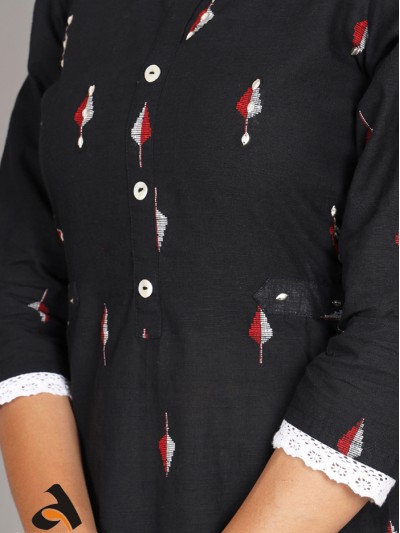 Finest cotton lining inside and front beautiful sober embroidery with foil mirror work and both side pockets.