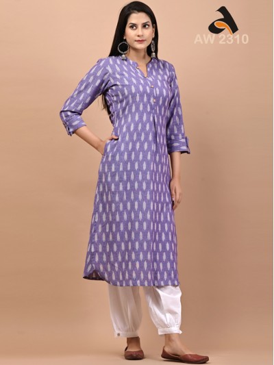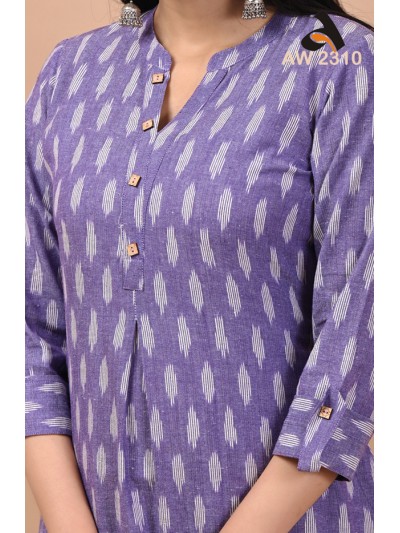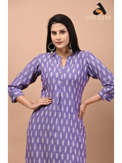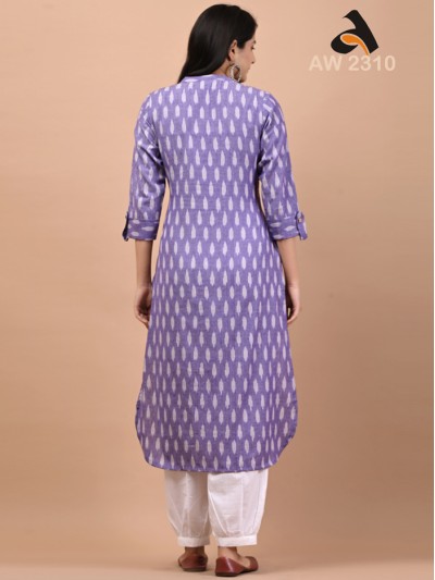 Lavender Purple Cotton Handloom Ikkat Kurta