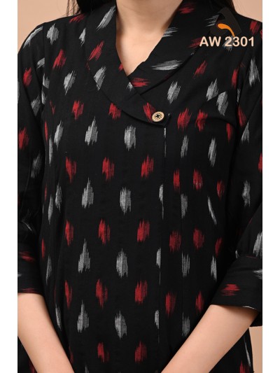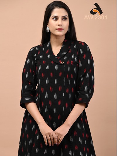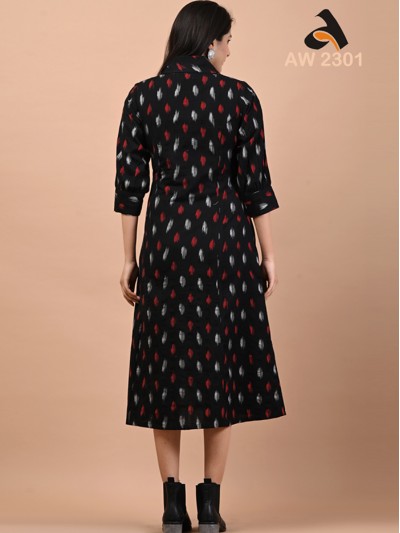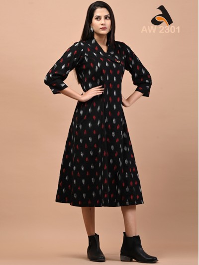Ebony Black Coat Collar Handloom Ikkat Dress